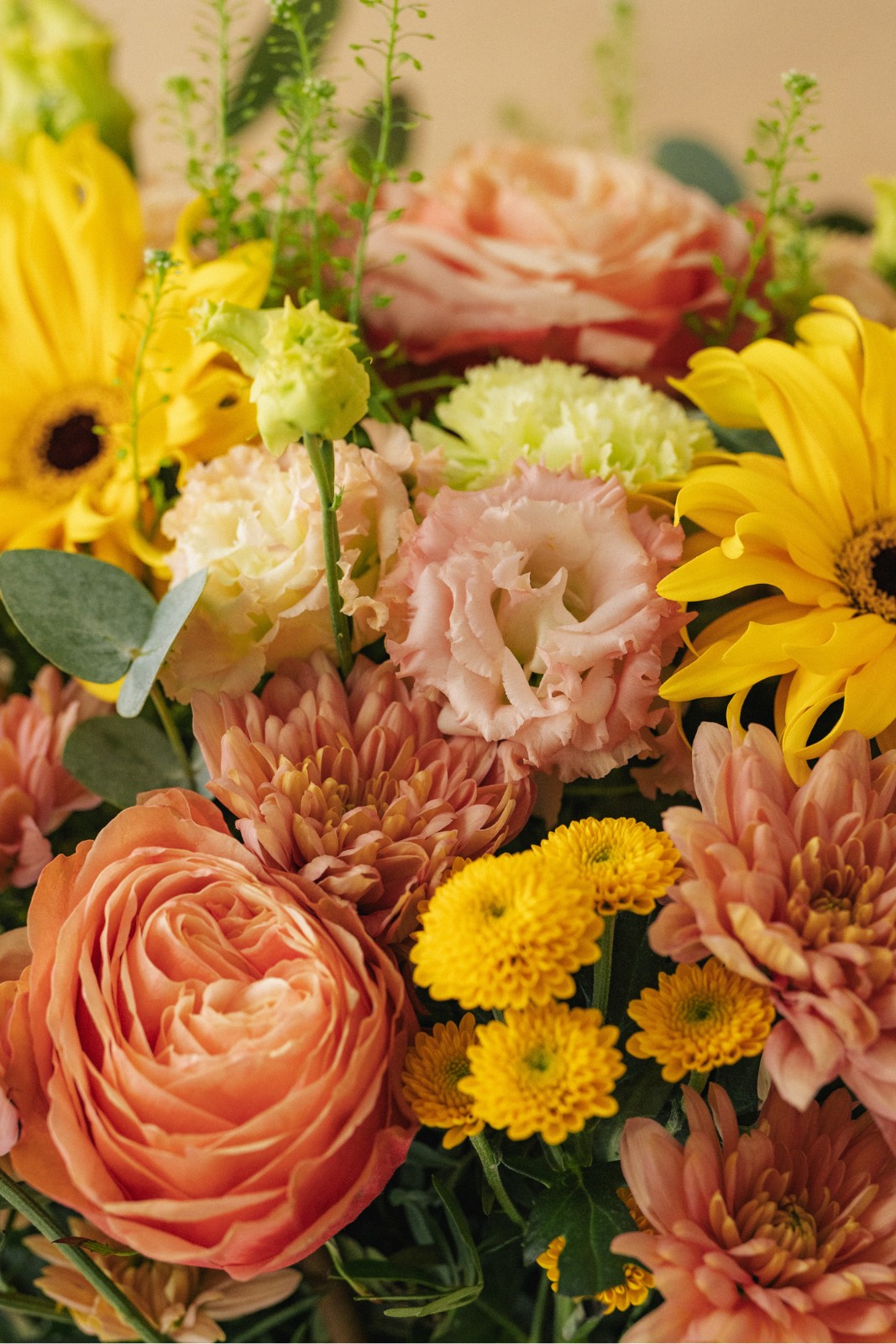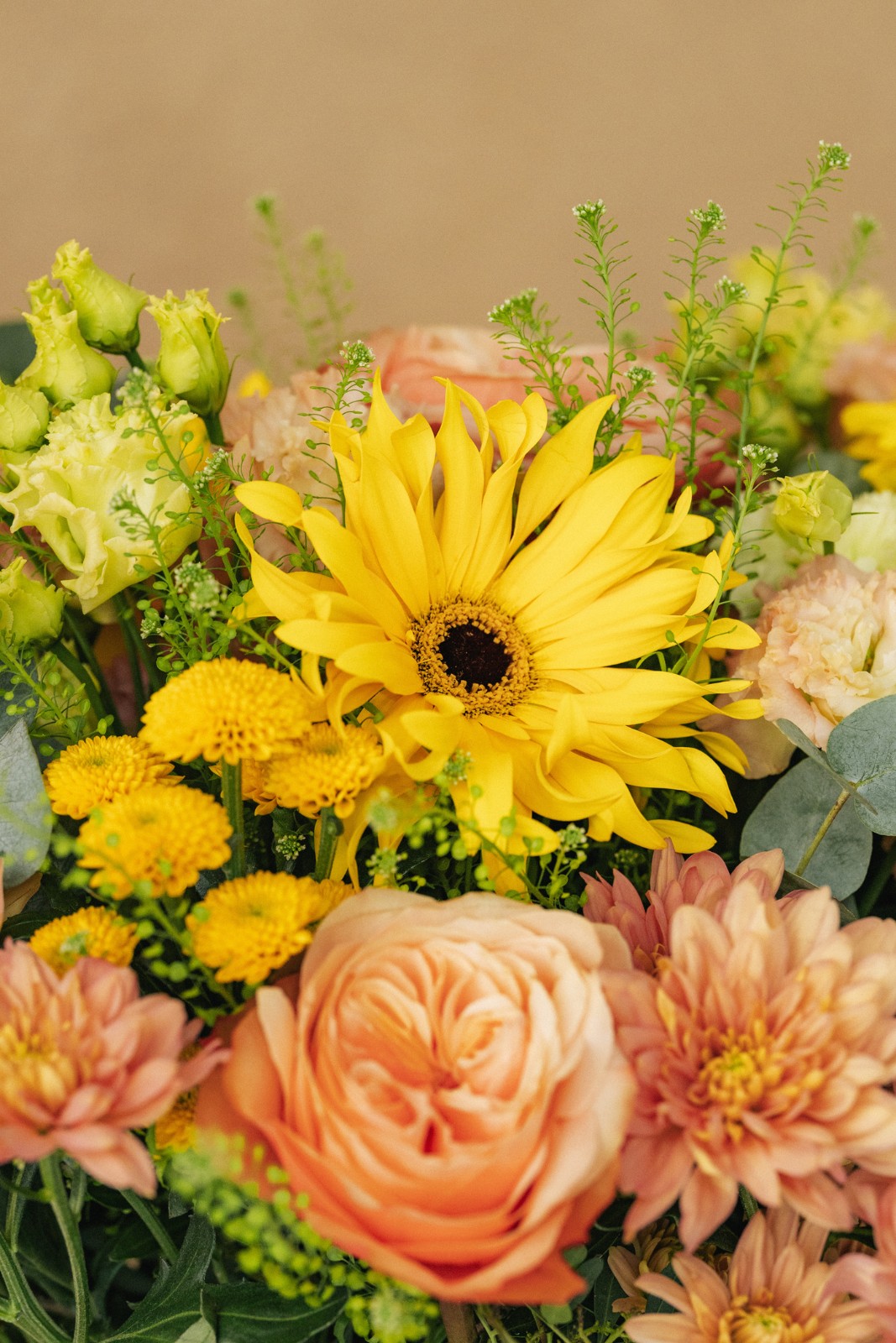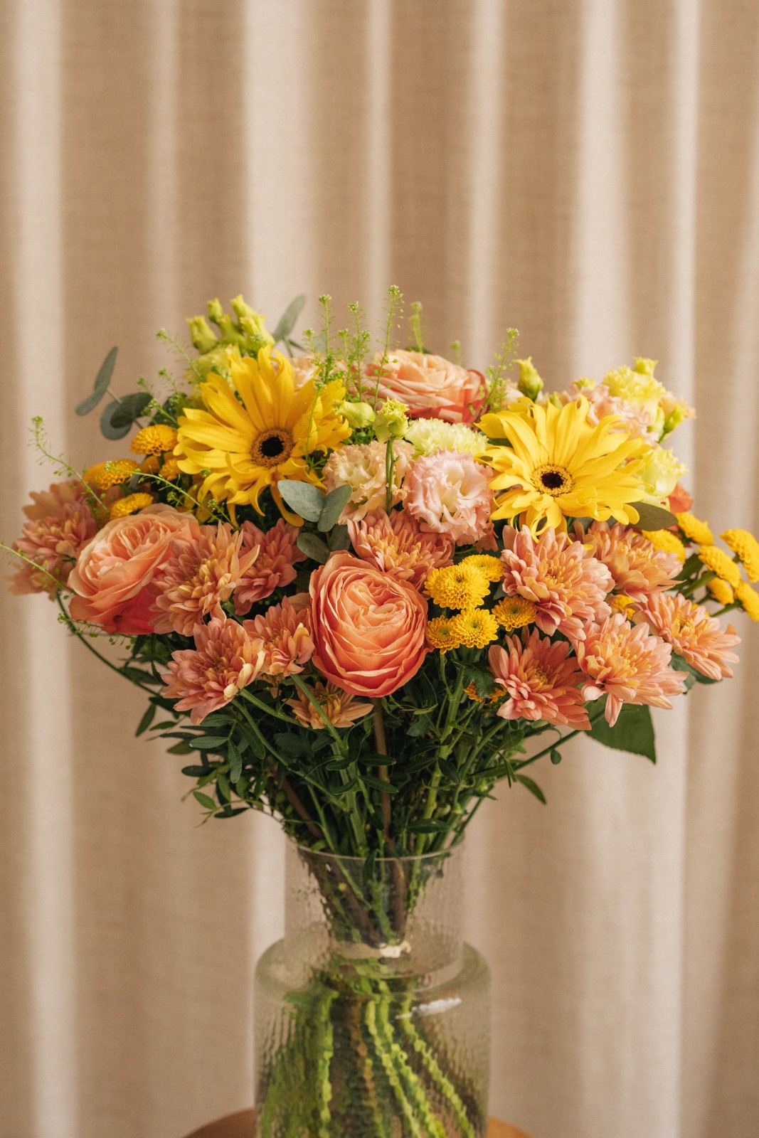 Les fleurs sont des produits naturels et récoltés au dernier moment auprès de nos producteurs. Il se peut que selon les conditions météorologiques, indépendantes de notre volonté, il y ait quelques différences de couleurs/variétés dans le bouquet.