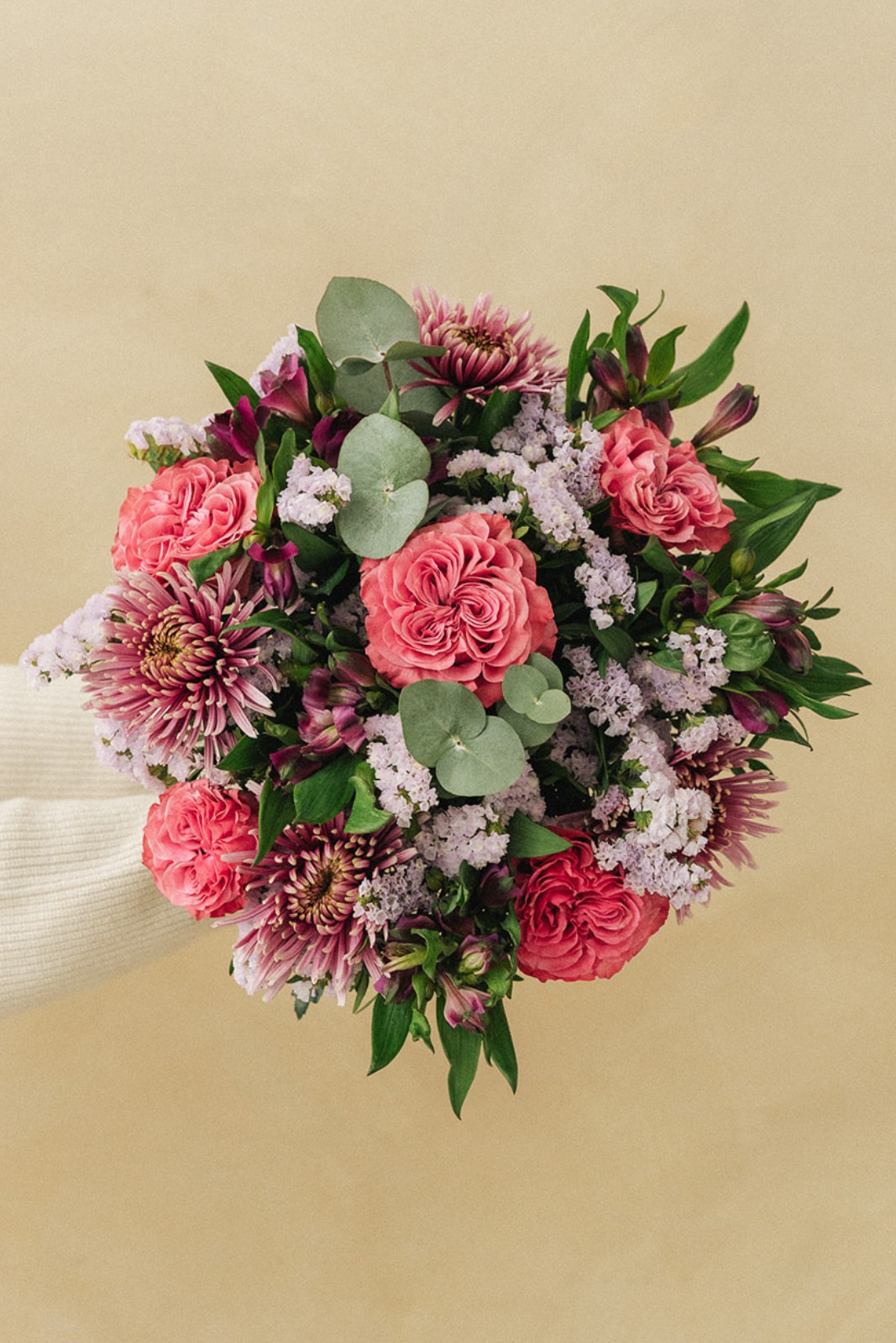 Dimensions moyennes du bouquet Large : diamètre 50 cm, hauteur 50 cm.