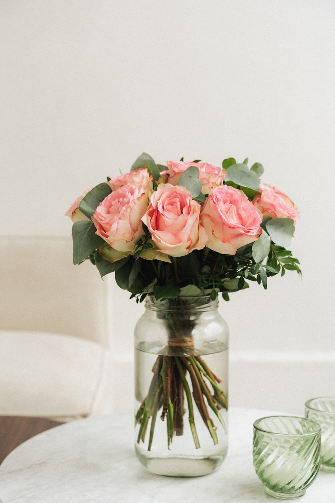 Une fois arrivé à la maison, mettez votre bouquet KANEL dans un vase avec de l'eau claire. Changez l’eau tous les deux jours et coupez les tiges en biais (avec un sécateur ou un couteau à fleurs).